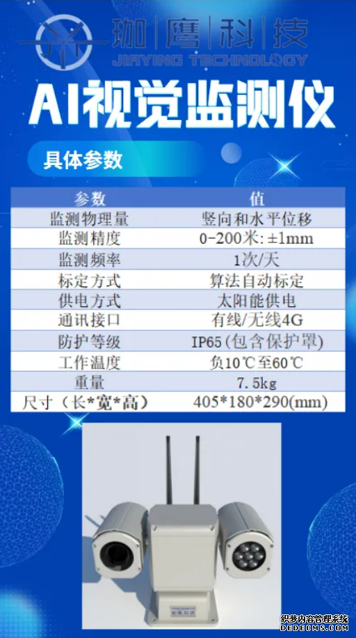 珈鷹研發出基于AI視覺的高精度實時變形監測系統,該系統利用 AI 視覺監測儀對公路沿線進行實時形變監測,具有高分辨率、高精度、實時性等優點。AI 視覺監測儀主要實現具體區域內的高精度變形監測并且實時進行數據更新,一旦發現形變異常,能夠立即發出預警信號,便于相關部門及時采取措施。